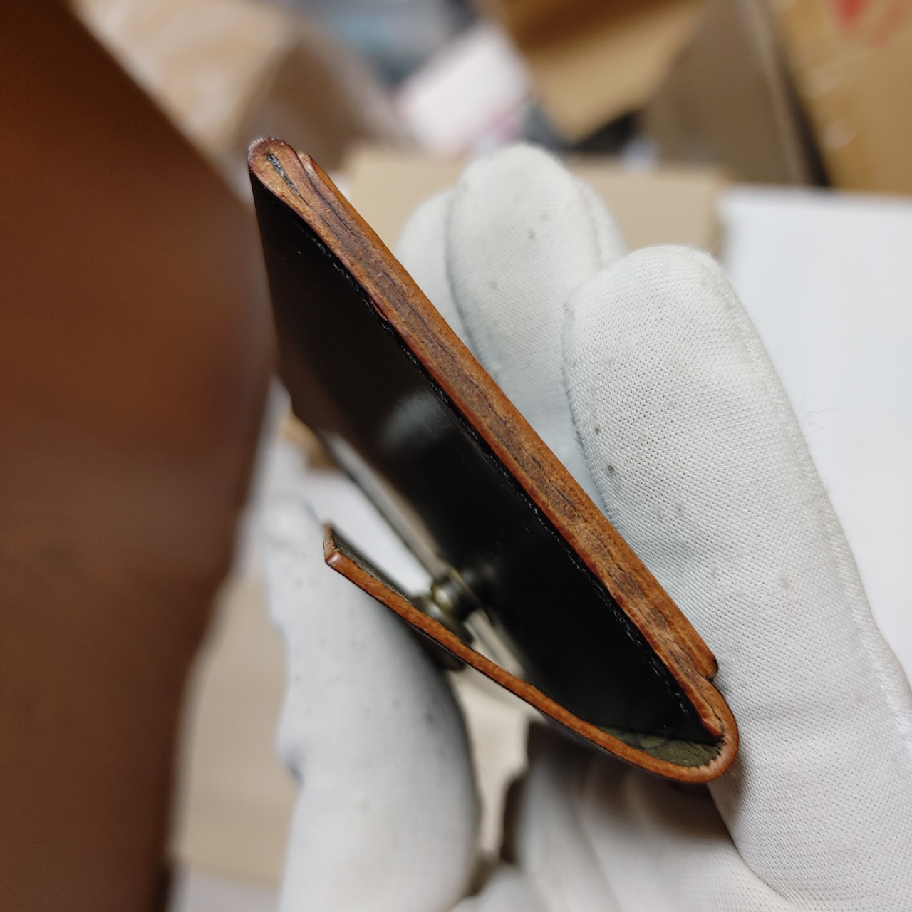 コンパクトなデザインです。その上、素材の良さを楽しむ財布でもあります。革の中でも希少な部類に入るシェルコードバンは、上品でワイルドさがあり、高級感があります。美しい光沢があり、見とれてしまう魅力があります。使用するほど味わい深くなっていきます。独特な良い香りも魅力だと思います。触感,視覚、嗅覚で楽しむことができるところも魅力です。 コードバンのため丈夫さもあります。ぜひご使用いかがでしょうか。