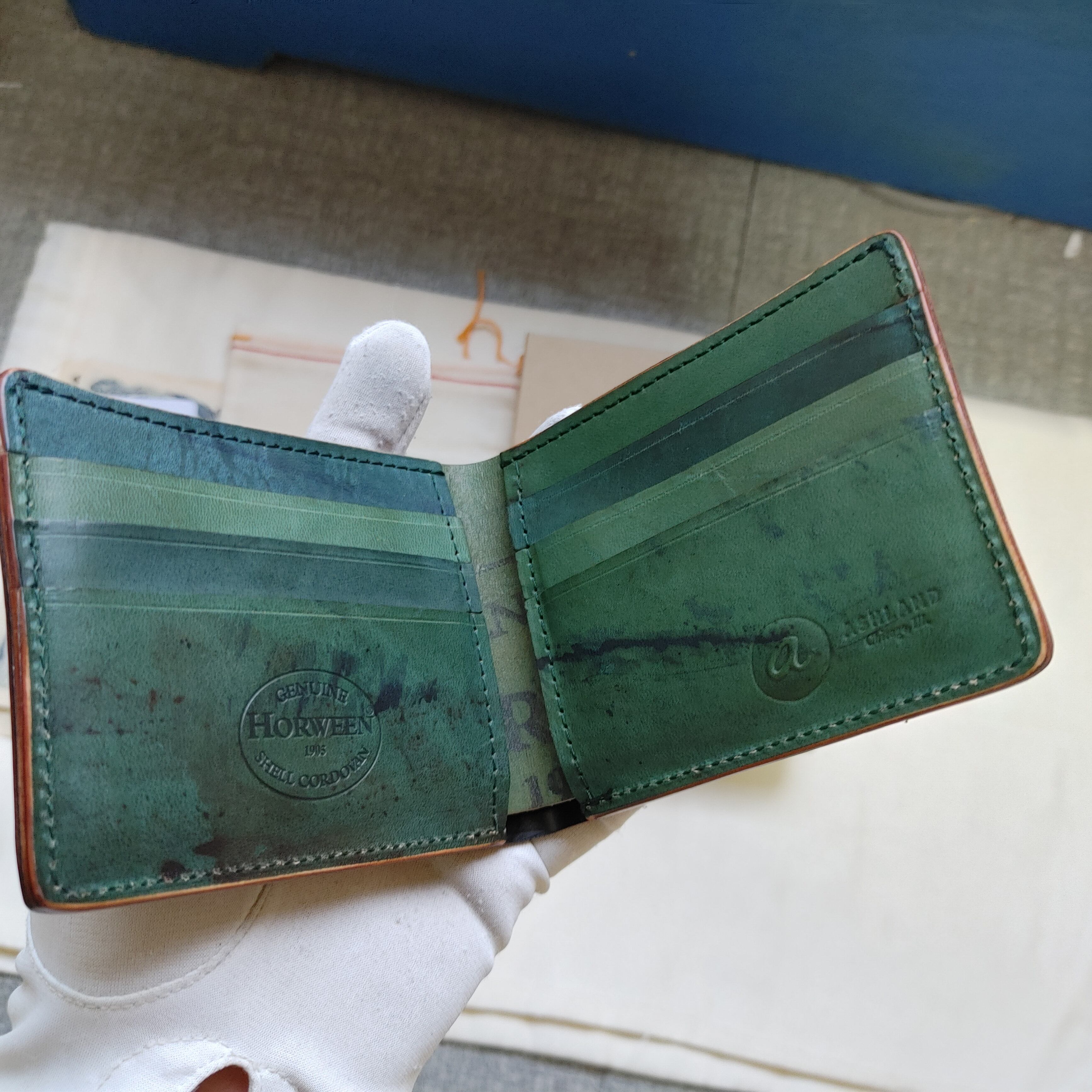 新品!値下げ交渉可!リバース ブラック シェルコードバンを使用!全てシェルコードバン使用の珍しい製品です。美しい外見や質感、機能面は所有感を満たしてくれます。内装に使用している薄いシェルコードバンは激レアです。