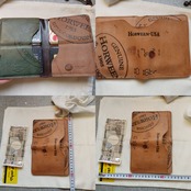 札入れ1つ、カード入れ4つと札入れ、各カード入れにはひとつあたり4枚入り、合計16枚以上はいります。1万円札は、20枚以上入ります。最後の3枚は参考のためのサンプルです。