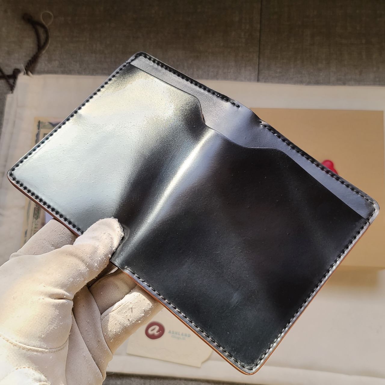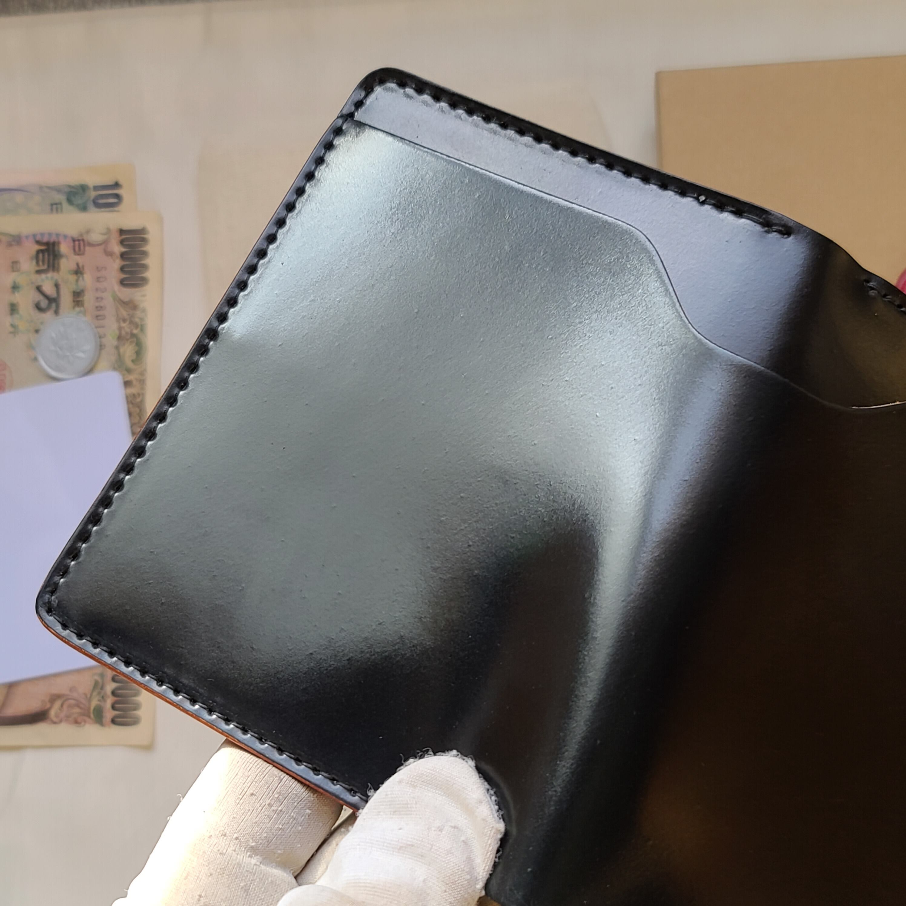 新品!ブラック シェルコードバンを使用!革は全てシェルコードバンを使用した珍しい製品。艶のある美しい外見は、所有感を満たしてくれます。