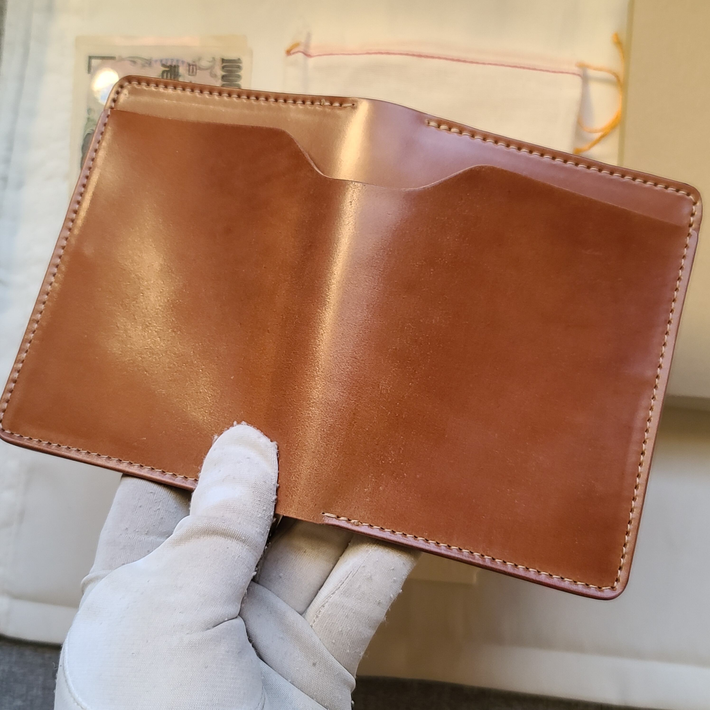 コンパクトなデザインです。その上、素材の良さを楽しむ財布でもあります。革の中でも希少な部類に入るシェルコードバンは、上品でワイルドさがあり、高級感があります。美しい光沢があり、見とれてしまう魅力があります。使用するほど味わい深くなっていきます。独特な良い香りも魅力だと思います。触感,視覚、嗅覚で楽しむことができるところも魅力です。