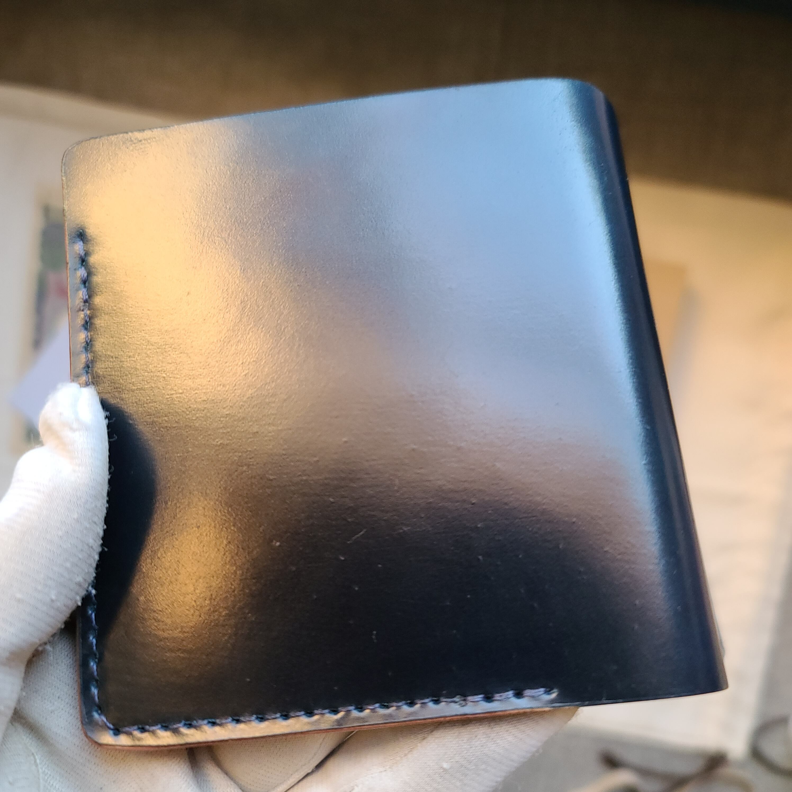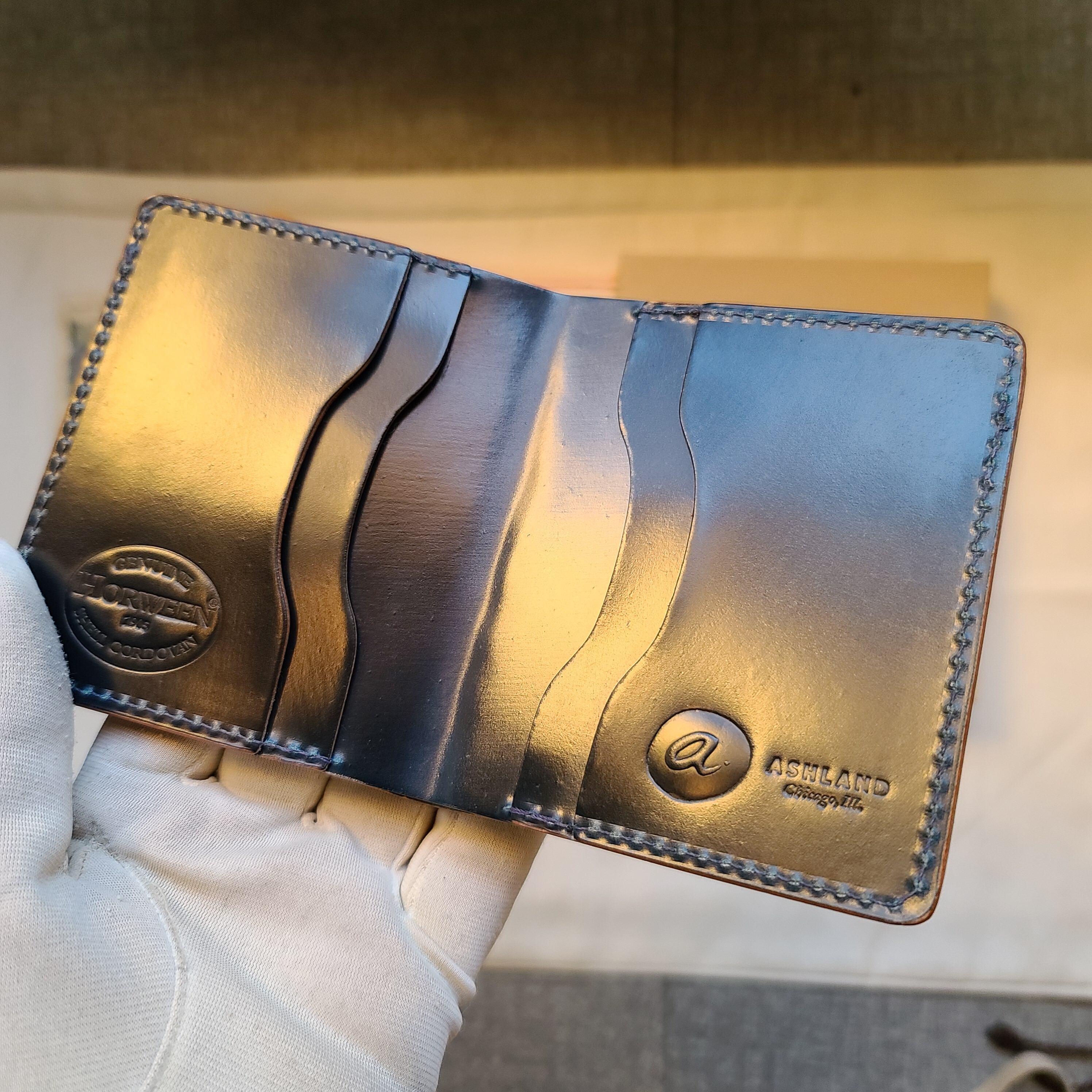 新品!ホーウィン製インテンスブルー シェルコードバンを使用!全てシェルコードバン使用の珍しい製品です。美しい外見と機能性は所有感を満たしてくれます。画像のタッチしていただくと拡大してご覧いただけます。