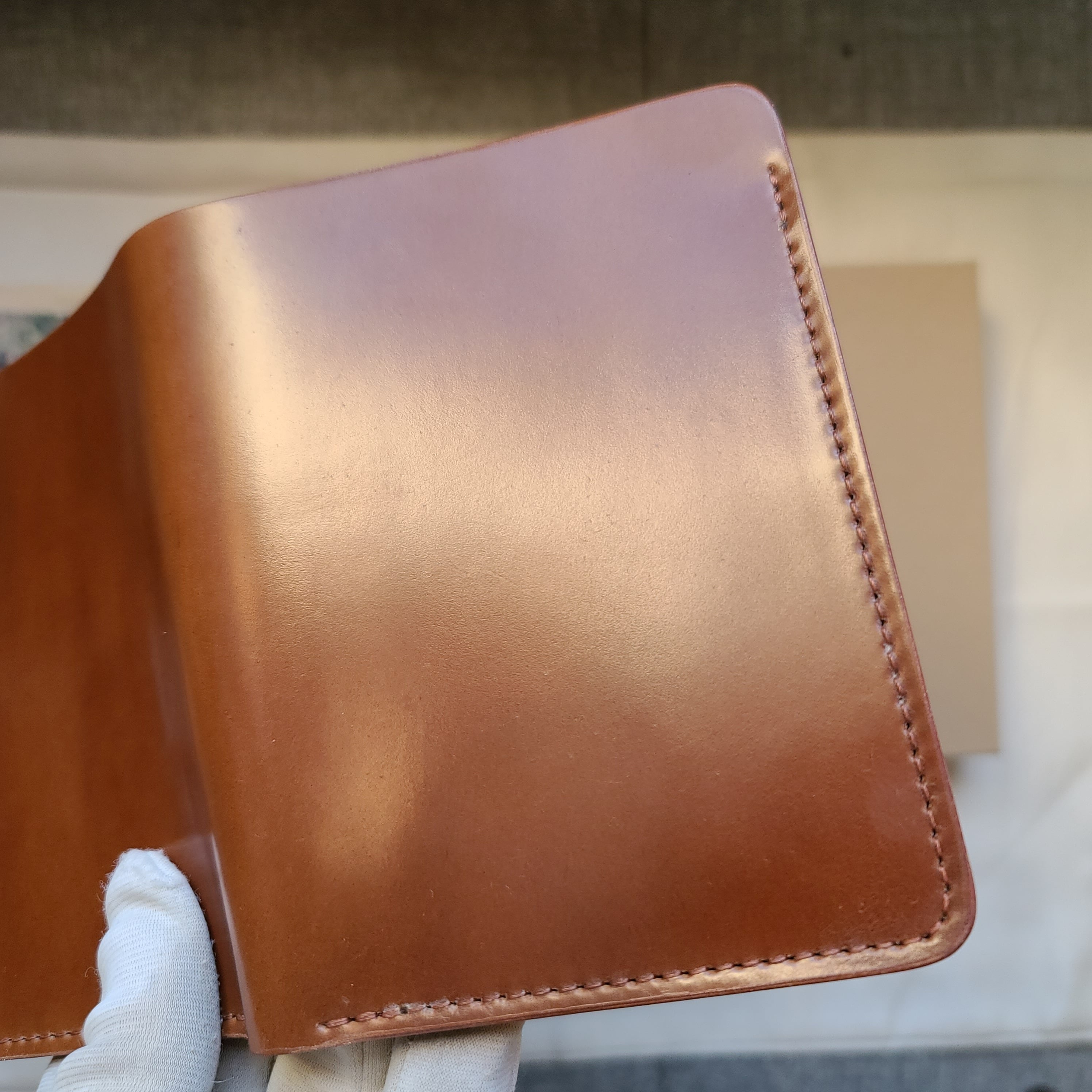 革の中でも希少な部類に入るシェルコードバンは、上品でワイルドさがあり、高級感があります。美しい光沢があり、見とれてしまう魅力があります。使用するほど味わい深くなっていきます。独特な良い香りも魅力だと思います。触感,視覚、嗅覚で楽しむことができるところも魅力です。