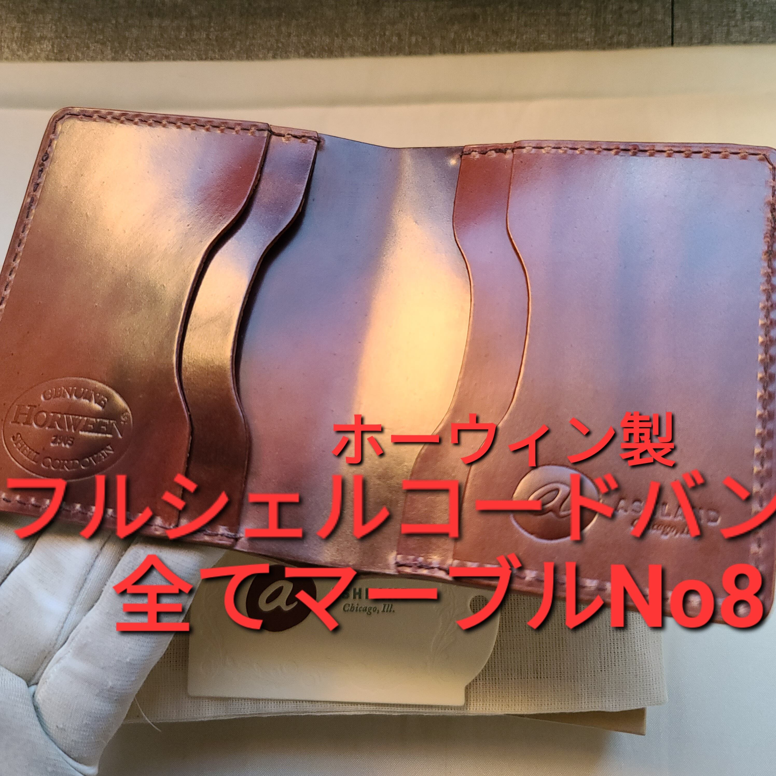 新品!ホーウィン製マーブルバーガンディ シェルコードバンを使用!全てシェルコードバン使用の珍しい製品です。美しい外見と機能性は所有感を満たしてくれます。