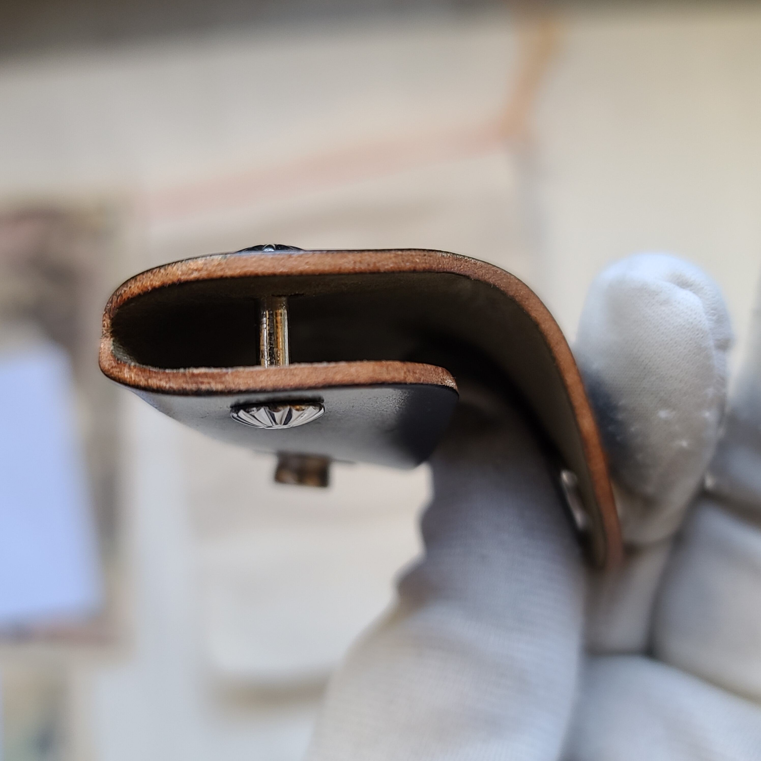 独特なキーホルダーは、しっかりと鍵を包みます。シェルコードバンを安価に堪能できます。初めてシェルコードバン製品を御検討される方にもオススメです。ネジを緩めて鍵を入れてまた閉めて使います。