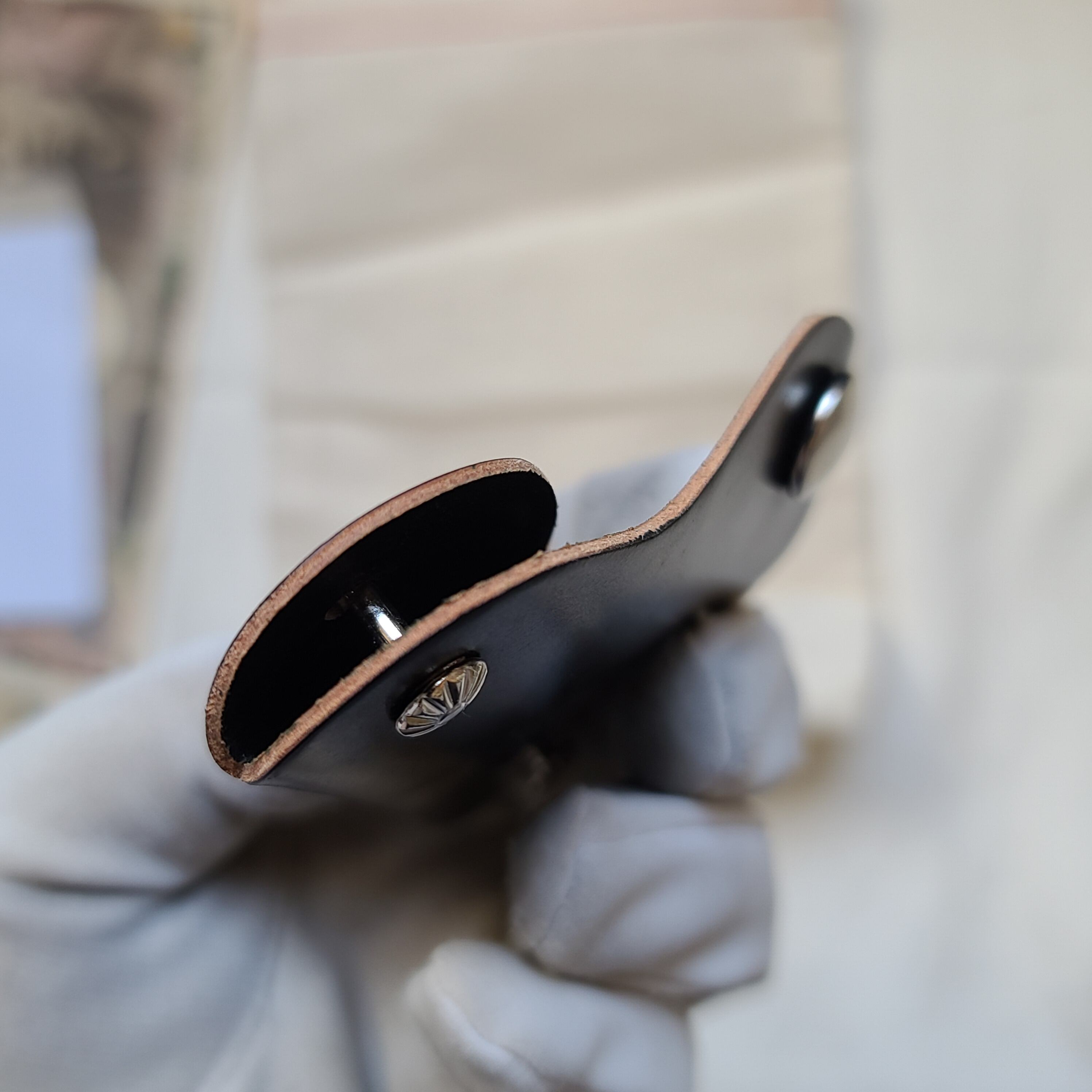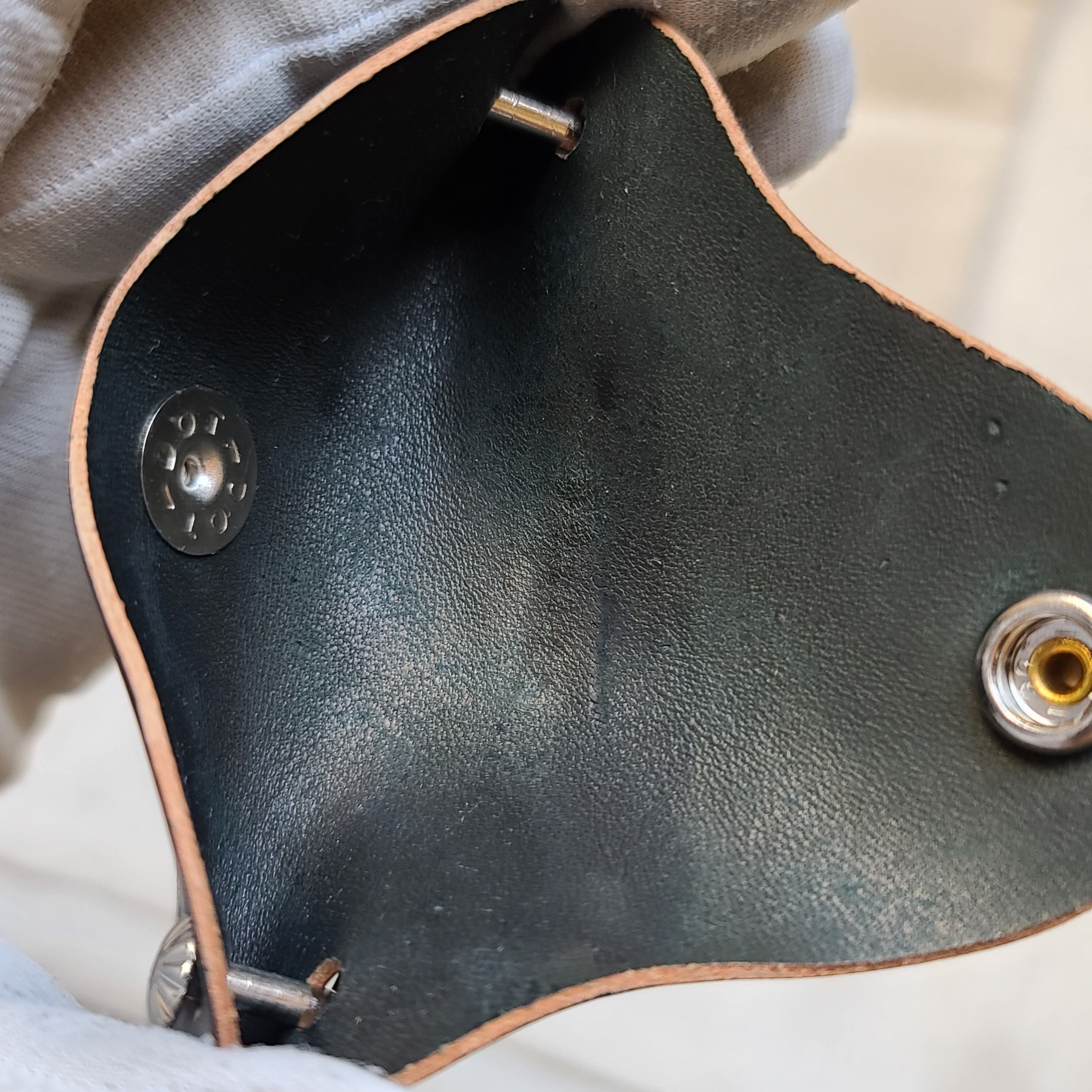 独特なキーホルダーは、しっかりと鍵を包みます。シェルコードバンを安価に堪能できます。初めてシェルコードバン製品を御検討される方にもオススメです。ネジを緩めて鍵を入れてまた閉めて使います。
