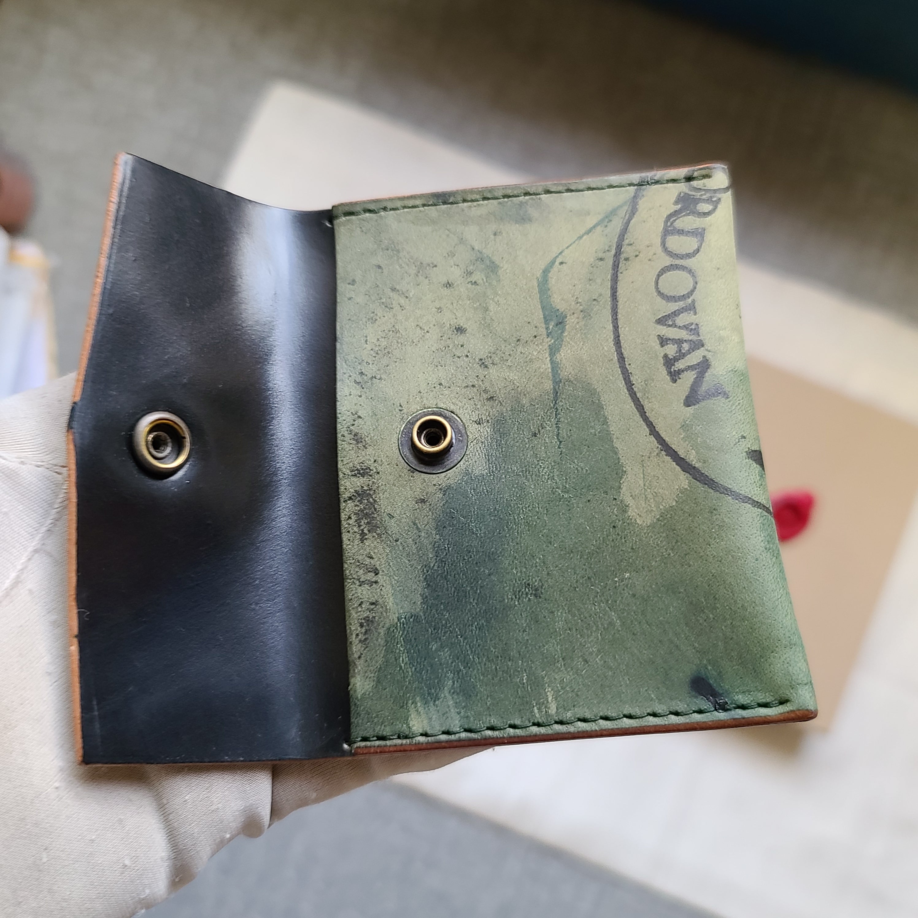 コンパクトなデザインです。その上、素材の良さを楽しむ財布でもあります。革の中でも希少な部類に入るシェルコードバンは、上品でワイルドさがあり、高級感があります。美しい光沢があり、見とれてしまう魅力があります。使用するほど味わい深くなっていきます。独特な良い香りも魅力だと思います。触感,視覚、嗅覚で楽しむことができるところも魅力です。 コードバンのため丈夫さもあります。ぜひご使用いかがでしょうか。