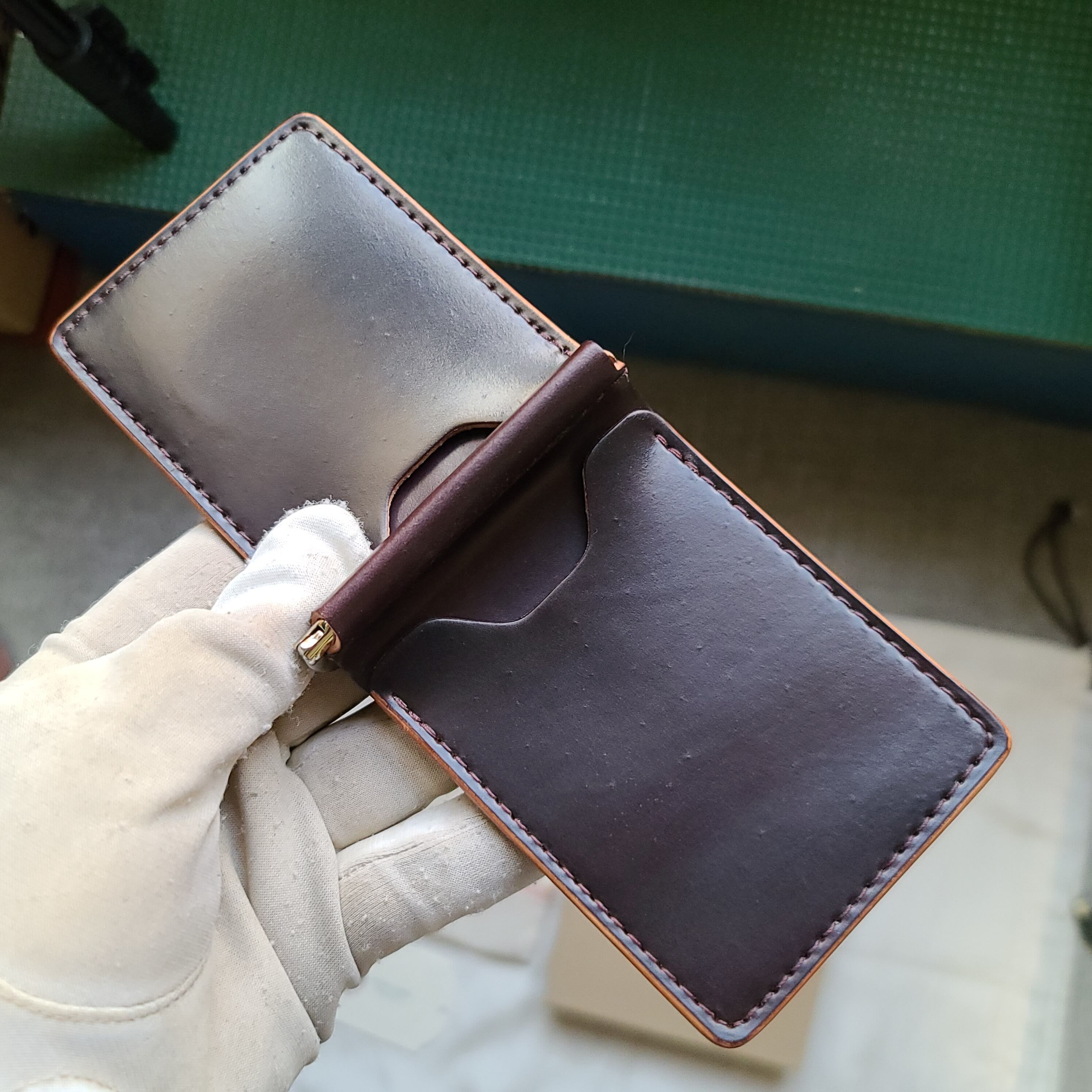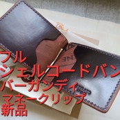 モデル名:アッシュランドレザー マネークリップ シェルコードバン バーガンディ